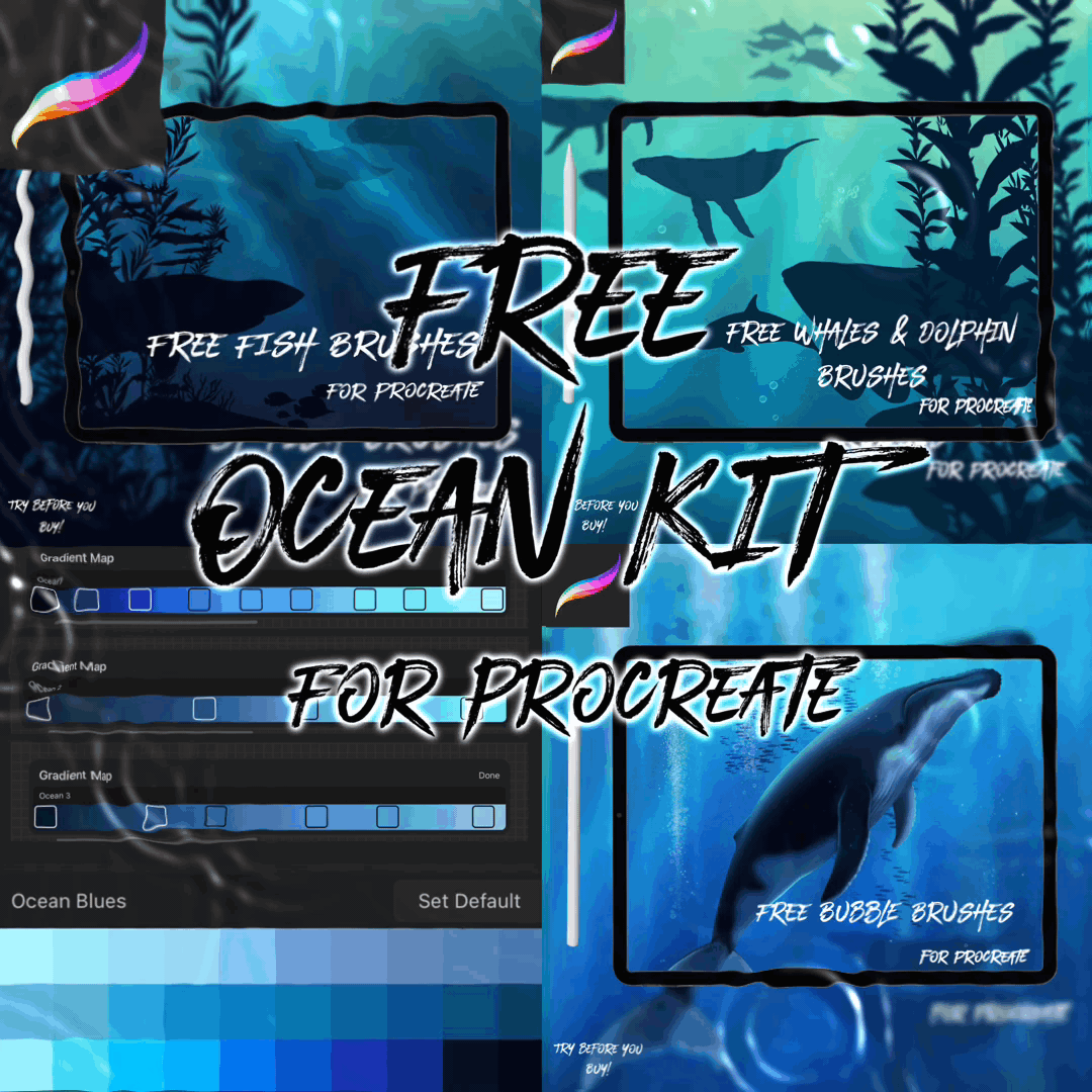 17 Procreate brushes, 1 colour palette, 3 gradient maps